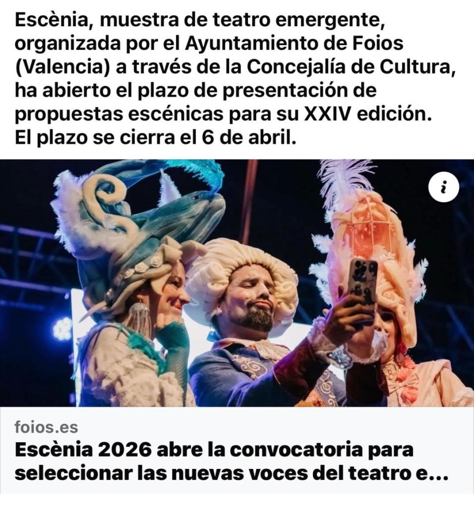 | Alianzas para una democracia cultural (Fundación Daniel y Nina Carasso, Madrid. Hasta el 19 de abril de 2026).Estancia de investigación Programa Profesor Martin Warnke 2026 (Museo del Prado, Madrid. Hasta el 15 de abril de 2026).BECA LATAM+CARIBE (Cobertizo, México. Hasta el 19 de abril de 2026).Dirección del Museu d´Art Contemporani de Barcelona (MACBA, Barcelona. Hasta el 21 de abril de 2026). Exposiciones Manolo Laguillo. Campo/contracampo (Disseny Hub, Barcelona. Hasta el 26 de abril de 2026).Tremulaciones (MAZ Museo de Arte de Zapopan, Jalisco, México. Hasta el 26 de abril de 2026).Txuspo Poyo: Anónima (Alhóndiga, Bilbao. Hasta el 17 de mayo de 2026).Ana Locking. Nostalgia / Utopía (Sala Canal de Isabel II, Madrid. Hasta el 12 de julio de 2027).Annie Leibovitz. Wonderland (The MOP Foundation, A Coruña. Hasta el 1 de mayo de 2026). |
