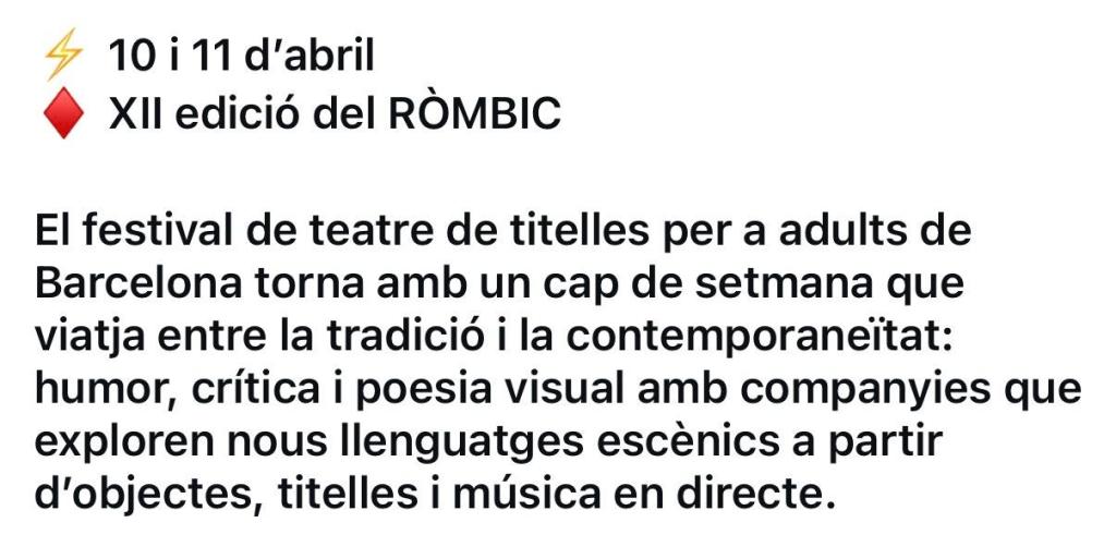 XII FESTIVAL DE TEATRE DE TITELLES PER A ADULTS DE BARCELONA.