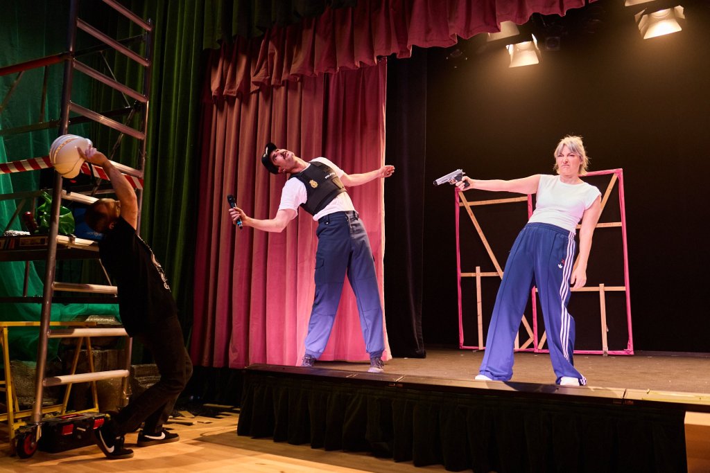 Con estas palabras, Cris Blanco, inicia su nota en el programa de mano… Y el espectáculo, que critica también formatos de teatro popular que a veces nos confunden, se sumerge en un laberinto sin salida, una propuesta en bucle sobre el juego de espejos deformantes en los que no descubrimos exactamente la frontera entre la verdad y la mentira. Disparate ficcional que juega a encubrir otras formas de confundir y divertir al público.