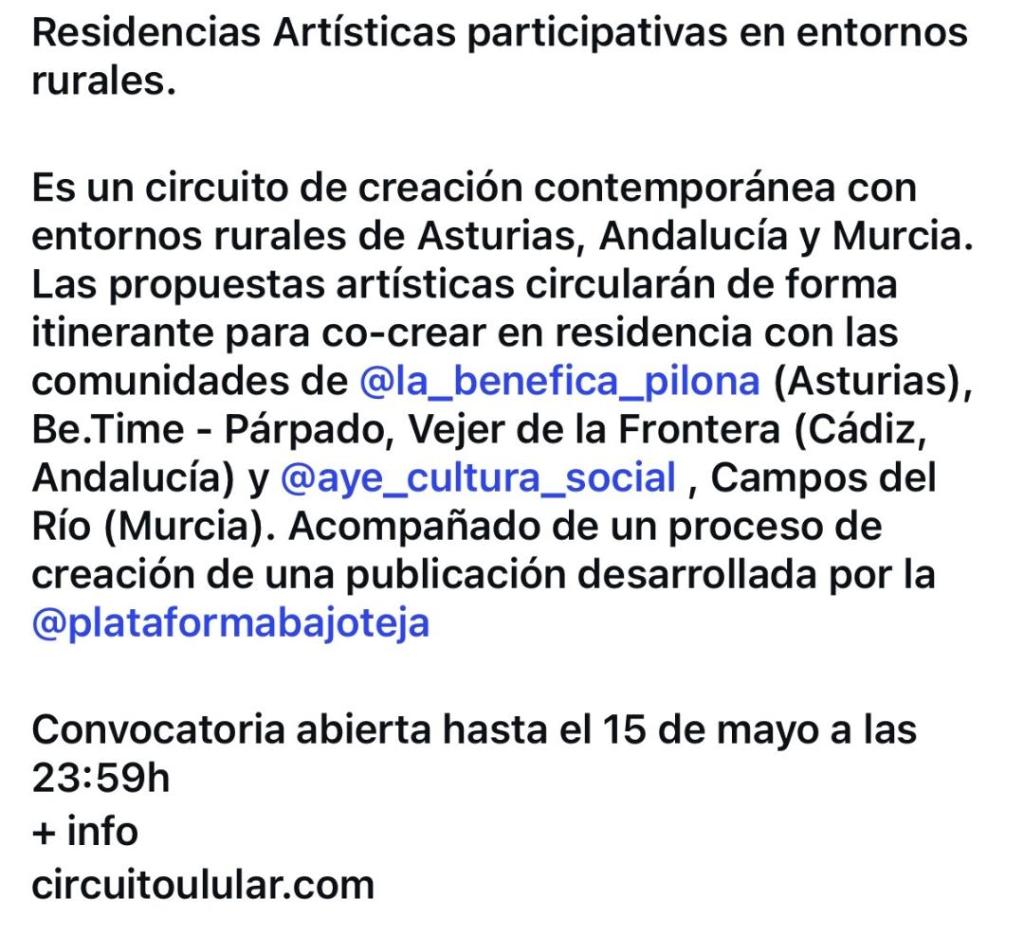 RESIDENCIAS ARTÍSTICAS PARTICIPATIVAS EN ENTORNOS RURALES