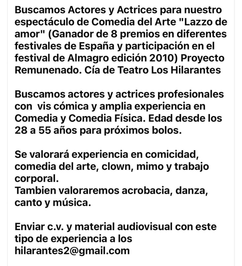 Actores y actrices para el espectáculo de Comedia del Arte: «Lazzo de amor»
