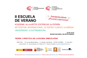 Una actividad organizada por la Academia de las Artes Escénicas de España en el 65º Festival Internacional de Teatro Clásico de Mérida con la Universidad de Extremadura (UEX), bajo el título Teoría y práctica de la escena grecolatina. Se celebra del 23 al 26 de julio de 2019 en el Museo Nacional de Arte Romano.