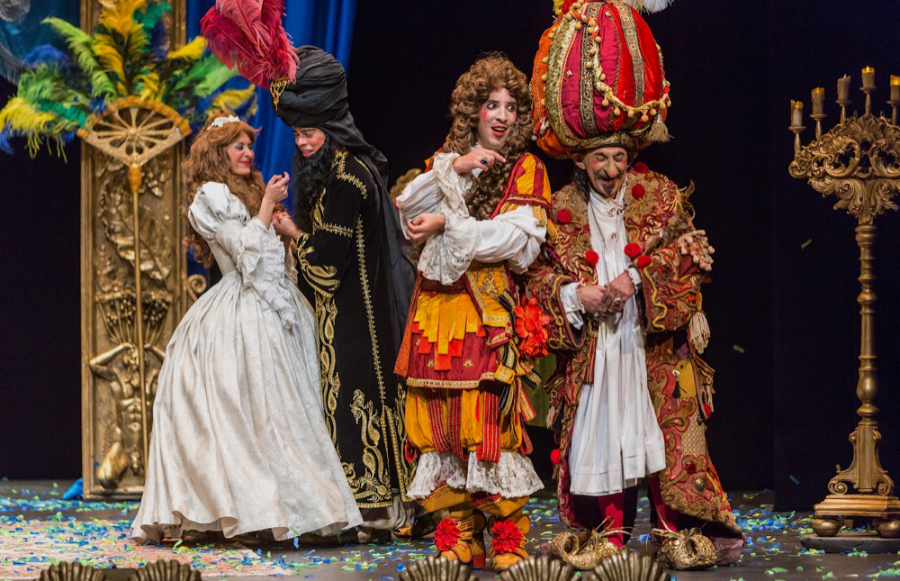 La gran revolución es en el 94, el gran salto, nuestro primer clásico: “El burgués gentilhombre”, salto mortal con doble tirabuzón, sin red y mucho valor: diez actores y treinta y tantos personajes, todos vestidos de época, creados de la nada y sin ayudas de ningún tipo.