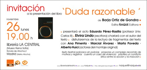Publicación y presentación del texto: DUDA RAZONABLE de Borja Ortíz de Gondra