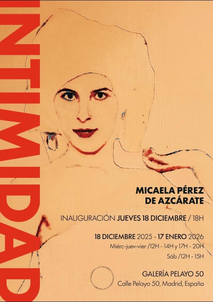 Micaela Pérez de Azcárate forma parte del equipo de diseño del Teatro Tribueñe y nos presenta la exposición Intimidad, una selección de pinturas al óleo y acrílicos.A través del autorretrato, la artista explora nuevas perspectivas desde las que representar un personaje: «Soy yo y, al mismo tiempo, alguien externo a mí; en ocasiones, un personaje universal».Nos invita a establecer un diálogo interno con la mirada de los personajes, generando un encuentro íntimo entre obra y espectador.En la GALERÍA PELAYO 50 (c/ Pelayo, 50. Madrid), miércoles, jueves, viernes y sábados desde el 18 de diciembre hasta el próximo 17 de enero.
