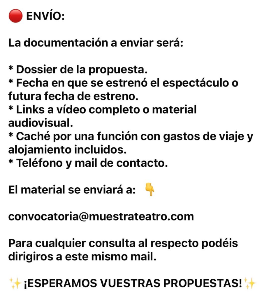 plazo de solicitud para propuestas de espectáculos , talleres , exposiciones , teatro en