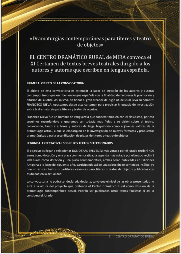 .. Beca Juan Cervera de investigación sobre artes escénicas para la infancia y la juventud.