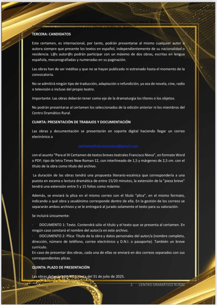 lectura, difundiendo los mismos. Podrán participar dramaturgos de cualquier nacionalidad con