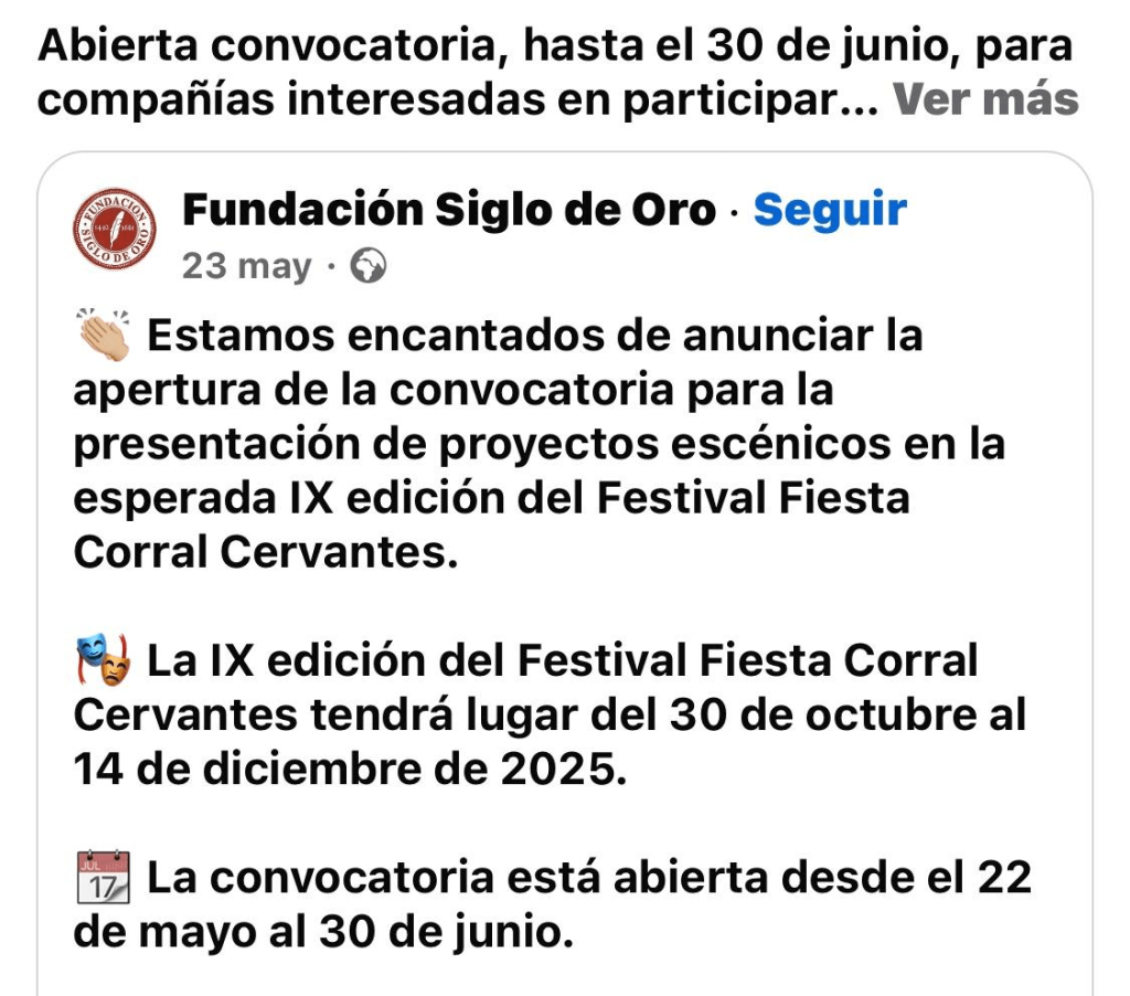 Festival Fiesta Corral Cervantes IX Edición – Convocatoria 2025.