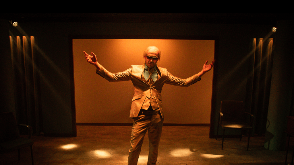 Dicen que cuando llega la muerte, aparece una proyección en la que, en el último minuto, se recorre toda nuestra existencia. ¿Y qué pasaría si esa película fragmentada surge del sueño de morir en el futuro?. Pues aparecerán personajes que ya no están, que dejarán de existir en los próximos años…y todos como en un collage enloquecido donde se cruzan seres reales e imaginarios…y todos con el aroma de la fantasmagoría, que no tiene porque ser patética si no cargada de humor esperpéntico. Un disparate filosófico sobre la existencia de la realidad y la ficción, un juego placentero para los dos actores y, por supuesto, para el público.