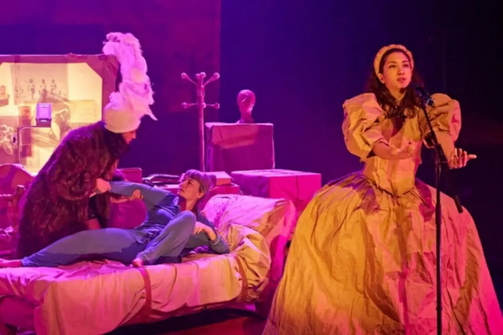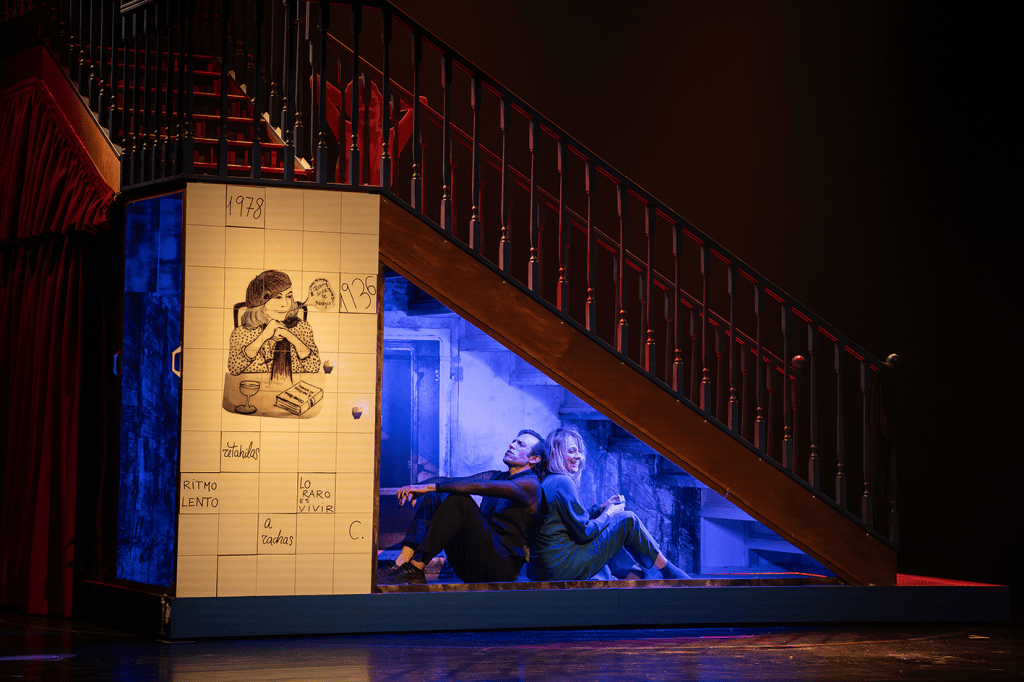 La puesta en escena es una ensoñación donde la escritora vive de forma mágica el encuentro entre sus personajes y su vida propia. Asistimos a un cuento extraño en el que la literatura le da la mano a el imaginario de una mujer en un tiempo, donde su mirada, adelantada a su tiempo, tenía que emborronarse con personajes desenfocados. El público de cierta edad se reconoce en muchos de los momentos, en esa lucha entre lo vivido y lo soñado, como si ese tiempo quieto de la dictadura nos hubiera metido en un cuarto secreto, donde podíamos ser un poco mejor de lo que el mundo permitía.