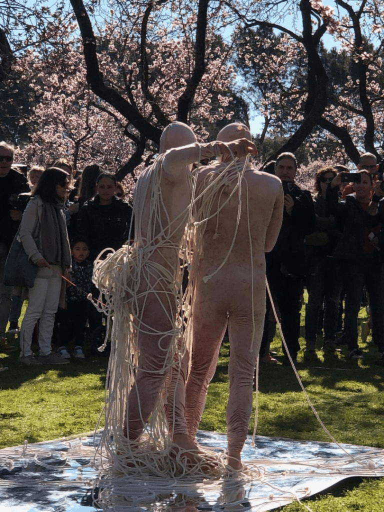 Todos los años, cuando se acerca la primavera y los árboles se preñan de flores, en este caso, los almendros de la Quinta de los Molinos, desde Espacio Abierto se organiza un evento que pone en diálogo a la naturaleza, al público y a los artistas, en este caso, Sharon Fridman ha sido el seleccionado para realizar un paseo creativo que desembocó en pequeños círculos donde los visitantes iniciaban un rito bailón. Al final, un gran círculo contenía dos cuerpos que emergían de la tierra para florecer. Una experiencia de estímulo para futuros artistas.