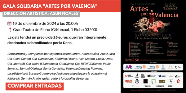 | ConvocatoriasTodas a una por Valencia. Actividades solidarias en galerías de arte (Galerías de Asturias, Barcelona, Bilbao, Cantabria, Galicia, Madrid, Mallorca, Valencia y Sevilla. 14 de diciembre de 2024)Jornadas de puertas abiertas en Tabakalera (San Sebastián. 13 y 14 de diciembre de 2024)Cuidar es punk. Convocatoria de residencias de investigación (Planta Alta, Madrid. Hasta el 15 de diciembre de 2024) | ExposicionesSigmar Polke. Afinidades desveladas (Museo del Prado, Madrid. Hasta el 16 de marzo de 2025)Huellas y vestigios, Liliana Porter (Casa de la Moneda, Madrid. Hasta el 9 de marzo de 2025)Oscar Domínguez. Dos que se Cruzan (TEA, Tenerife. Hasta el 11 de mayo de 2025)Imogen Cunningham. Esencias (Museo Carmen Thyssen, Málaga. Hasta el 19 de enero de 2025) |