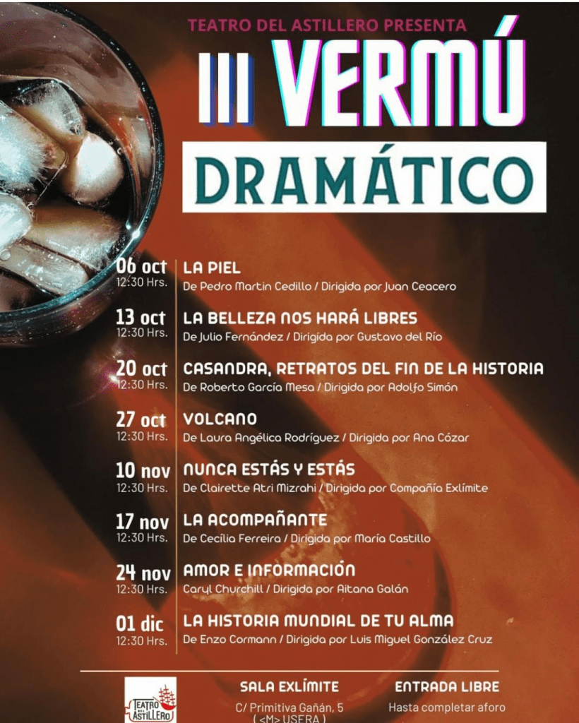 Para impulsar la difusión de la oferta teatral y de musicales de la capital, el Ayuntamiento patrocina la campaña de comunicación ‘Ven al teatro, vive Madrid’, ideada por la Asociación de Productores y Teatros de Madrid (APTEM) y que estará activa durante todo el mes de octubre en televisión, radio, prensa, medios digitales, redes sociales, soportes de publicidad exterior y otras entidades colaboradoras.