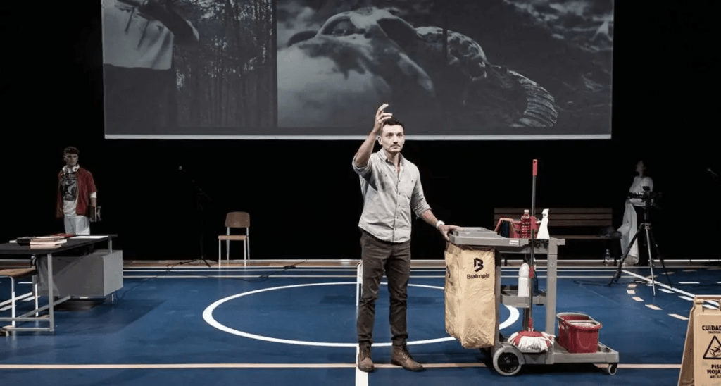 Sergio Blanco es el máximo exponente actual del llamado teatro de autoficción y en este caso, que también dirige su texto; obra que relata de forma íntima con él…lo aborda con distancia y toques de humor poético, tal vez solo así se puede transitar por ese luto ante la ausencia de alguien tan importante para él como fue su madre. Así, en ese espacio deportivo donde se compite con el cuerpo, la cabeza y el corazón, Sergio indaga sobre el eco que su madre dejó en diferentes personas, nunca sabremos si fue así o es necesario fabular sobre la realidad para poder soportarla. En este caso, el autor y el director se alían para que la obra, misteriosamente, se cuele en nuestras propias experiencias, generando un viaje personal frente al espejo ficcional.