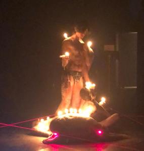 El artista uruguayo asentado en España, Alejandría Cinque, estrena una performance que delibera sobre la sexualidad de las personas homosexuales. Una mezcla entre danza y teatro que reproduce los sucesos que acontecen al anochecer en la Casa de Campo de Madrid. En la propuesta performática presentada en Teatro Pradillo se transita por un ritual demoníaco a ritmo de música de ambiente nocturno…El inicio templado va adquiriendo tintes de instalación física donde los cuerpos van componiendo una escultura que será, finalmente, una gran antorcha de fuego con tintes de erotismo homo erótico que, poco a poco, transformó a la sala en un templo irreverente.