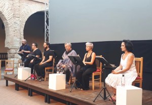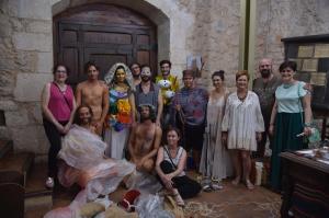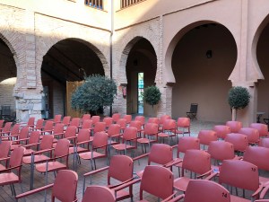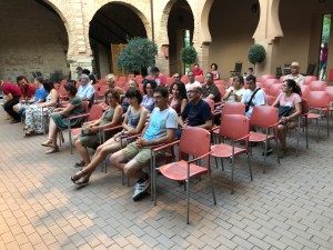Como los cómicos de la legua, llegamos al Claustro del Museo y desembarcamos allí con nuestros bártulos. Gracias al equipo del Festival, preparamos la puesta en escena sencilla y pudimos incluso ensayarla antes de la llegada del público. Y, a pesar del calor, como buenos espectadores curiosos, a las 20´30 horas del 10 de julio, acudieron para escuchar, en voz de los actores… Mada López, Teresa Valeriano, Gustavo A. Martín, Alberto de Pablos, Lorena Herráiz, Celia Girón y Luis García Grande…
