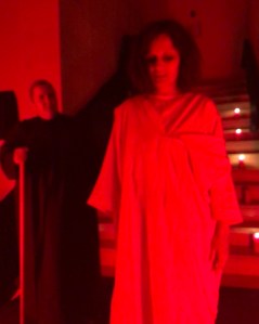 Primero asistimos a “Carmen en llamas” interpretada por Teresa Valeriano, una pieza de teatro documento sobre unos hechos ocurridos en San Clemente durante el tiempo de la Inquisición que se llevó a cabo en las instalaciones del Juzgado de San Clemente.