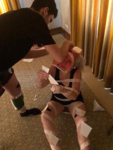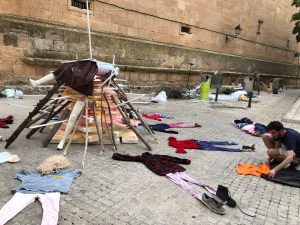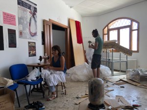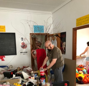 A partir de aquí, los asistentes se sumergieron en archivos y edificios para ir extrayendo anécdotas y datos que fueran conformando la idea sobre la que se iría construyendo el boceto plástico-escénico que finalmente se mostraría. Poco a poco se fue desarrollando la instalación performática donde las curiosidades descubiertas y materiales de reciclaje con los que se trabajó, iban dando forma a lo que en cada imaginario de los participantes se iba conformando.