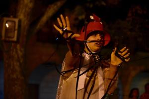 Los ciudadanos de San Clemente, generosos y curiosos siguieron a los personajes en su recorrido desde la oscuridad a la luz por la piel de cada rincón del recorrido. Al final, todos volvimos a la Torre vieja, allí, un ser enigmático lanzó un poema cántico a la fachada de este particular lugar, como si de un canto de amor a su memoria se tratase…