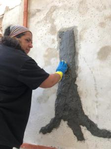 Un lienzo inspirado en los propios muros del lugar y en el que añadió un poema escrito por Cinta Pérez Sáiz, vecina mireña.