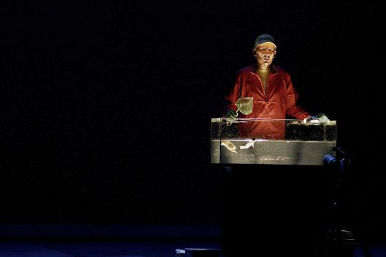 Salí y me perdí por las calles de Lavapiés, tenía una sensación de pérdida de orientación extraña, como si hubiese aterrizado en otro planeta, como si viniese de otro lugar, atravesando el tiempo…¿Dónde había estado?…En esos paisajes agrestes y profundos que construye Rodrigo García en la escena. No ha podido arrancar mejor el ciclo de El Lugar sin límites que ha organizado Teatro Pradillo junto al CDN que con un tríptico alrededor de la figura de este creador. Arrojad mis cenizas sobre Mickey ha sido la primera piedra de este edificio en construcción, un territorio en el que entró la grúa de la censura para agrietar sus paredes al no permitir que se realizase una escena con animales. ¿Animales?…Animales torpes los que se quisieron abalanzar sobre la piel de la obra…Y…Animales monstruosos los que desfilaron por la escena diciendo palabras de fuego y realizando acciones de hielo. Sus performers son mediums modernos que realizan rituales contemporáneos conectados con los ritos más ancestrales…Allí estaban, para mostrarnos la miseria del presente y el futuro, ante los ojos atónitos de una familia ejemplar que se escondía tras los cristales de su coche último modelo. Rodrigo García escribe cada vez con palabras más afiladas, son dardos que lanza contra la pantalla del teatro y contra nuestro cerebro. Y propone situaciones y escenas llenas de violencia callada, de caricias agrias para mostrarnos que detrás de la máscara del confort y la modernidad está el mundo vacio y alineado.