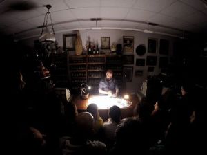 deambular por el interior ruinoso de un edificio decimonónico, sin más iluminación que velas y linternas. Por fuera el viejo cartel de la ferretería Santos, Suministros Navales, por dentro había de todo, máscaras de gas, cuentos infantiles, travestismo, fetichismo, bastante infancia, cantos de sirena y toda una colección de recuerdos propios y ajenos, que aparecían y desaparecían delante del público. Restos de un naufragio y de unos náufragos con los que era imposible no sentirse identificados.