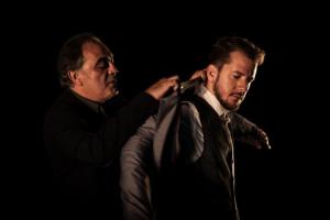 Al acabar el espectáculo, una brusca salida hacia la luz, donde todos somos muy listos y estamos acompañados de nuestras certezas y manías. Intentando definir lo que había visto, me quedé como un idiota leyendo el cartel, que afortunadamente rezaba “Muestra del curso Dramaturgia del espacio actoral, impartido por Adolfo Simón”. ¡Uf! ¡Qué alivio! Justo lo que había visto…
