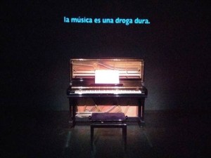Rubén Ramos Nogueira es un pianista genial pero, además, tiene una visión sobre su tiempo y el sentido del arte. Seguramente, podríamos acudir a uno de sus conciertos y ver sus manos y su rostro dibujando sonidos y sin embargo, él, prefiere, como ya es su habito, tratar de establecer dos planos, dos actividades. Y de este modo, se coloca de espaldas al público para que nuestra mirada sólo se centre en su música y sobre todo, en el pensamiento, casi automático, que se va escribiendo en una pantalla…Este cruce de lenguajes, a veces provoca extrañeza y otras, en cambio da sentido a las notas de Gibbons suspendidas en el aire, mientras el pensamiento, naif o amateur, se concreta en palabras.