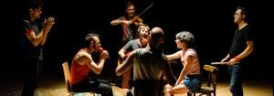 A estas alturas de la película es muy difícil que nada sorprenda desde una escenario, sin embargo, parece que ese es el objetivo de la programación de este año en los Teatros del Canal: Sorprender!. Y cuando ya parece que todo está visto, cuando la cartelera muestra obras que se repiten y clonan, aparece esta compañía que, en otras ocasiones también nos deleitó, con una propuesta sin límites, con froteras finísimas entre lenguajes; cuando parece que es un espectáculo de danza, se convierte en una propuesta musical o de experimentacion sonora, cuando creemos que estamos sumergidos en un drama cruel, el humor atraviesa como un rayo la escena. Una maravilla, lástima que esté todo agotado porque son esas obras que hay que recomendar sin duda.