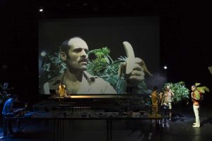 El mundo se va al garete, así que vamos a celebrarlo. Esta podría ser la irónica conclusión final del último espectáculo de Agrupación Señor Serrano, cuya premisa de partida está en dos monstruos que, en realidad, son uno: King Kong y el capitalismo. «¿Estamos bien?…Si, estamos bien…», esta frase se dice varias veces durante la propuesta, una forma irónica de afrontar este mundo en el que vivimos y en el que parece que somos tan felices aunque nos sentimos al borde del precipicio. Humor, juego, ironía…y múltiples habilidades creativas conforman una propuesta que sigue en la línea de esta compañía que cada vez amplía su discurso escénico y temático. Y da igual si el público piensa que no es teatro o cine, es un vehículo para pensar y descubrir los entresijos de una sociedad a la deriva desde tiempo inmemorial.