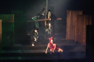 “El público” de Federico García Lorca, encuentra casa esta vez en la compañía Ksec Act, un grupo de actores japoneses que se adentran a representar este universo de forma onírica. Con una mezcla entre lo simbólico y lo ritual, transcurre la obra. Una apuesta grande por lo corporal y físico, nos regala imágenes sumamente potentes. Se encuentra a un medio camino entre lo que esconde la palabra del señor Lorca y toda la fuerza que posee la tradición teatral japonesa. Hablamos pues, de una obra que suma dos grandes potencias para hacer convivir dos estilos totalmente diferentes en un imaginario muy personal que caracteriza a esta compañía.