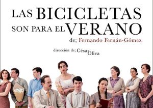 En esta ocasión, tendría que haber escrito…De Fernando Fernán Gómez; el destino ha querido que coincida el autor de la obra con el nombre del teatro. Las bicicletas son para el verano ya es un clásico de nuestro teatro contemporáneo, una mirada diferente sobre lo que ocurrió en nuestra guerra civil, sobre todo porque esa visión de aquel tiempo, se hace desde la mirada de un niño y ya sabemos que los pequeños ven todo mucho más grande e ingenuo de lo que fue. César Oliva deja la marca de la infancia en unos trazos de tiza sobre el suelo y en ese recuerdo emborronado, se van desplegando los muebles viejos que quedaron atrapados en el desván. Los actores están instalados también en ese almacén de recuerdos, como un mueble más que cobra vida para recuperar esa memoria perdida. Un equipo actoral que funciona como un engranaje, permite que la historia vaya cobrando vida e intensidad. Hay un elenco de intérpretes que transitan por la escena en busca de los fantasmas de aquel tiempo pasado que no dista tanto de nuestro presente incierto. Hay un trio protagonista compuesto por Llum Barrera, Patxi Freytez y Esperanza Elipe que construyen los entresijos dramáticos que desembocarán en un verano sin pedales para vivir y amar.