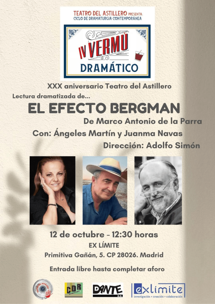 6 de octubre de 2025 | Categories: NOTICIAS | Comentarios desactivados en «El efecto Bergman» de Marco Antonio de la Parra para celebrar el XXX Aniversario del Teatro del Astillero.