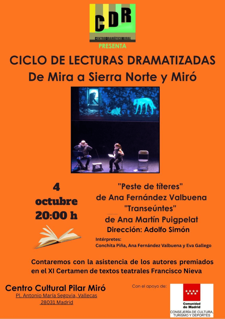 2 de octubre de 2025 | Categories: NOTICIAS | Comentarios desactivados en Ciclo de Lecturas Dramatizadas en el Centro Cultural Pilar Miró de Madrid.