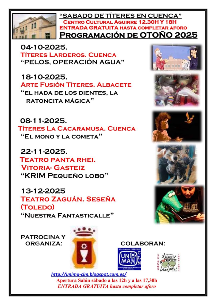 ..Festival «Alguien voló sobre el nido del Titiritero», en Praga El Centro Checo UNIMA, invita a una muestra de teatro de títeres que está preparando con el apoyo del Instituto Cultural Checo (antiguo Instituto de Artes y Teatro), el departamento PerformCzech y Loutkář / Revista Titiritero, en el marco del festival «Alguien voló sobre el Nido del Titiritero» en Praga. La muestra tendrá lugar del 6 al 9 de noviembre. El programa está dirigido a dramaturgos, directores artísticos, educadores y animadores teatrales, así como a otros profesionales de las artes escénicas. Se proporcionará alojamiento gratuito, entradas para el transporte local, espectáculos y programa complementario a los participantes seleccionados. La fecha límite de inscripción es el 30 de septiembre de 2025.+ Info.