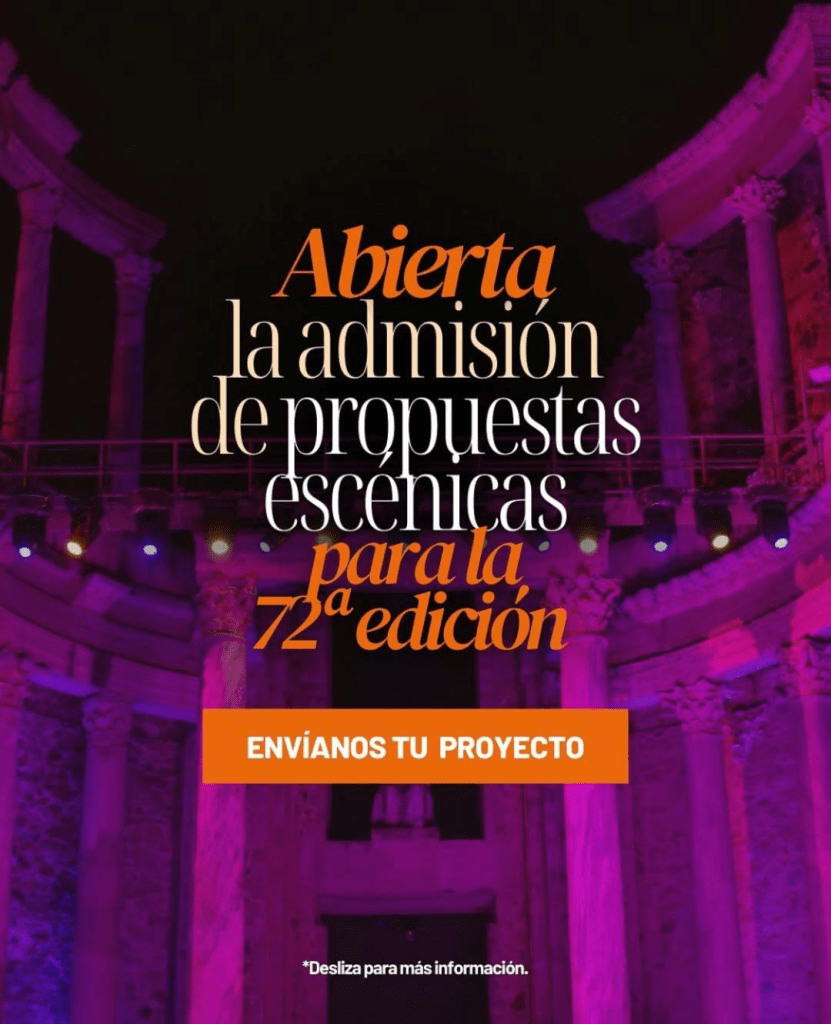16 de septiembre de 2025 | Categories: NOTICIAS | Comentarios desactivados en ABIERTA LA ADMISIÓN DE PROPUESTAS PARA LA PRÓXIMA EDICIÓN DEL FESTIVAL DE MÉRIDA.