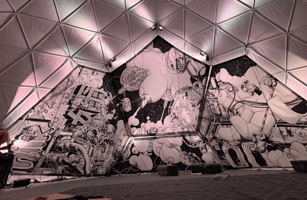 15 de septiembre de 2025 | Categories: NOTICIAS | Comentarios desactivados en El mallorquín Carles García O’Dowd expone en Palma de Mallorca algunas de las piezas de su monumental cúpula inmersiva e ilustrada del Burning Man 2025.