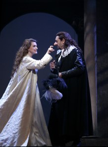 Hay que agradecer la posibilidad que nos ha dado esta producción para que por fin se presente Ainhoa Arteta en el Teatro Real pero por encima de todo, hay que agradecer que Plácido Domingo tenga la generosidad y el acierto de arriesgarse con un personaje como es este Cyrano. A estas alturas de la carrera del genial cantante, podría estar relajado haciendo conciertos como solista o dirigiendo espectáculos y sin embargo, se compromete con la escena lirica y con el público que ama este arte. Plácido Domingo llega en este espectáculo a un nivel vocal e interpretativo inmenso…Desde la mirada del personaje que lucha por escribir la historia de amor que habría querido vivir para tener que soportar la vida en trinchera que finalmente pudo tener…Hay un tránsito no solo vocal, musical o escénico…Lo hay de gran emoción en el recorrido que el interprete hace, no solo cuando está ante nuestra mirada, cuando se marcha sigue su halo acompañando cada escena y momento de la obra. La composición que hace de gestos y matices interpretativos le coloca en la cima de la escena operística de nuestro tiempo…Plácido Domingo se supera año tras año…¿Qué nos deparará en el futuro?