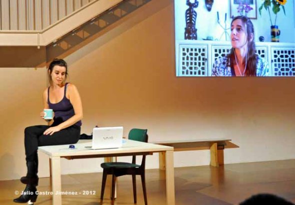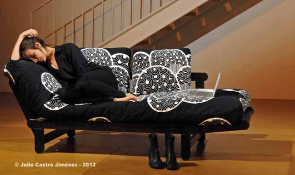 Que es la realidad?… Aquello que nombramos?… Lo que sentimos?… Lo que ocultamos?… En La realidad, Denise Despeyroux hace un sencillo tratado filosófico sobre aquello que somos y lo que nos permiten ser… Un tema tan complejo podría haberse convertido en una entelequia imposible de descifrar y sin embargo, lo instala en una situación cotidiana, ante un acontecimiento terrible que esta a punto de ocurrir… En escena se crea una virtualidad en la que dos hermanas se comunican por video conferencia… La distancia permite generar un espacio de comunicación/incomunicación muy interesante ya que podemos ver en escena a una de ellas y proyectada a la otra. Las dos hermanas son interpretadas por Fernanda Orazi en uno de los trabajos mas complejos y ricos de los que ha realizado en Madrid; los silencios de escucha de algunos momentos eran de una emoción demoledora. Intuyo que este trabajo ha sido realizado minuciosamente entre Denise y Fernanda, generando un espacio intimo fascinante al que nos asomamos pudorosamente con una sonrisa.