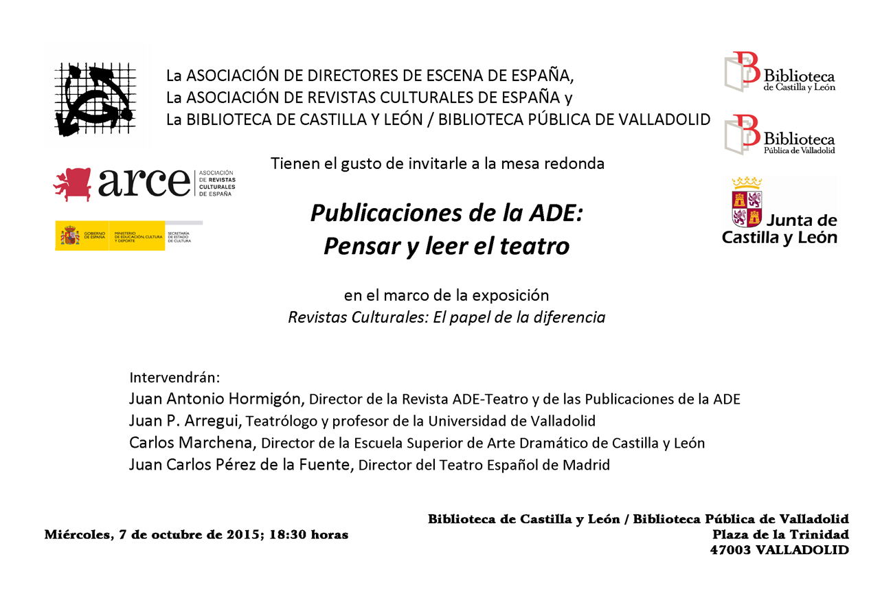 26 de septiembre de 2015 | Categorías: EVENTOS Y ACCIONES ESCÉNICAS | Tags: Pensar y leer el teatro, Publicaciones de la ADE | Deja un comentario