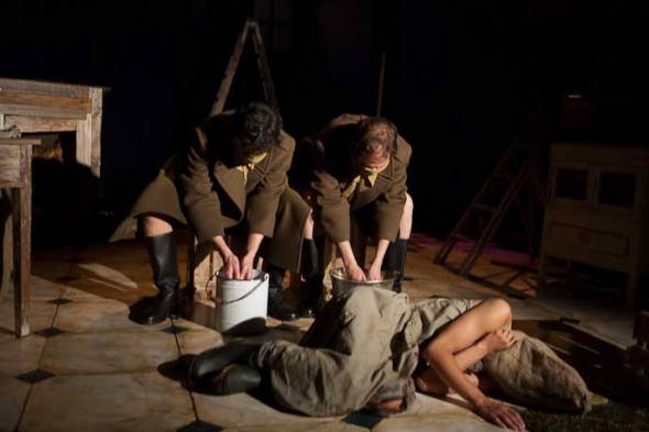 La historia de la humanidad se asemeja a una muñeca rusa, cuando abrimos una encontramos otra igual debajo y así sucesivamente, hasta que la última se pierde en nuestras manos. Purga de Sofi Oksanen es un texto complejo, lleno de juegos temporales que nos muestran el presente como un reflejo del pasado…son los mismos perros con distintos collares. En un espacio único, la producción cómplice de Ilmatar y Vaivén ha creado un lugar en el que se da cobijo a personajes de hoy que se cruzan con fantasmas físicos o reales, que vuelven del pasado para descubrir el terror de un tiempo que parecía que nunca volverían a ver nuestros ojos y que como siempre le pasa al hombre, vuelve de nuevo a tropezar con la misma piedra. Hay historias de amor y sometimiento, de traición y sexo, de poder y amistad, como pasa en la vida; esta obra es la historia de unas mujeres pero podría ser una página del diario de todos nosotros, la vivida en algún momento de nuestro pasado o del presente.