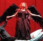 Tony Kushner, al escribir Angels in América, no solo creó la gran obra sobre el sida si no que hizo una radiografía de la sociedad norte americana antes del nuevo milenio. Buceó en la historia de los Estados Unidos a través del efecto creado allí por el cruce de múltiples religiones; en un mundo movido por el dinero y el poder. En España se ha podido ver pocas veces este texto en escena, hay que recordar la espléndida puesta en escena que hizo Josep María Flotats para inaugurar el Teatre Nacional de Catalunya… La metáfora escénica que eligió, sobre la que transcurría toda la obra…Un gigantesco cementerio judío, daba una dimensión escalofriante al texto de Kushner. La Compañía italiana, Teatro Dell´Elfo al frente de la cual está Ferdinando Bruni y Elio Capitani, ha presentado su lectura de la obra en Los Teatros del Canal de Madrid; ellos han apostado por un fondo básico de teatro, en blanco, sobre el que se proyectan audiovisuales que dan dimensión plástica al montaje, el resto de la obra se sitúa en momentos escénicos a la italiana, dispuestos en diferentes ángulos de la escena y con pocos elementos escenográficos. De este modo, el apoyo sobre el que se basa la propuesta está en la entrega de los actores, constantemente juegan en escena las distintas situaciones planteadas por la obra, cambiando de emoción en cuestión de segundos. Un dato curioso a tener en cuenta es el intento, desde la dirección, por extraer momentos de comicidad del texto, difícil de imaginar en una primera lectura de la obra, ya que, Angels in América, ha sido considerada la primera gran tragedia del nuevo milenio.