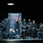Un gran meteorito en el centro del escenario nos recibe y nos acerca a ese futuro minimalista, gris, frío y ecléctico donde van a ir transitando personajes afectados de «robotismo» y tecnología retrofuturista, a veces angustiados, estresados, encerrados, obligados a comportarse según las normas…a veces en calma, en observación de lo que les rodea, en armonía con la naturaleza… acompañandos por la música de Arvo Pärt. Una Catedral construida con imágenes potentes, un gran trabajo corporal, un trabajo coral que recorre el recinto para dotarlo de espiritualidad y optimismo.