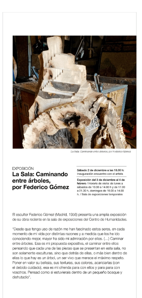 28 de noviembre de 2023 | Categories: NOTICIAS | Comentarios desactivados en Exposición: La Sala: Caminando entre árboles de Federico Gómez