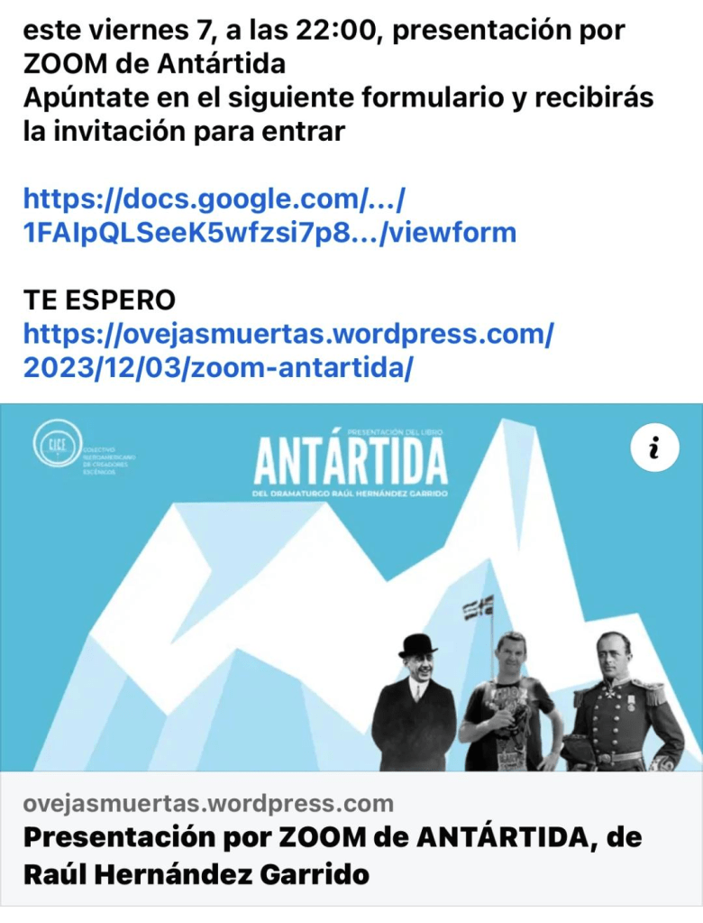 Presentación online de ANTÁRTIDA de Raúl Hernández Garrido