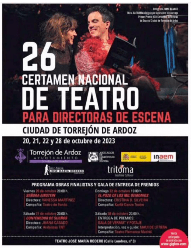 9 de octubre de 2023 | Categories: NOTICIAS | Comentarios desactivados en 26 CERTAMEN NACIONAL DE TEATRO PARA DIRECTORAS DE ESCENA